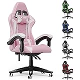 bigzzia Chaise Bureau Chaise Gaming Ergonomique en PU Cuir, Hauteur Réglable, avec Coussin Lombaire et Appui-Tête, Fauteuil Gamer Confortable pour Adultes, Filles et Garçons (Blanc et Rose)
