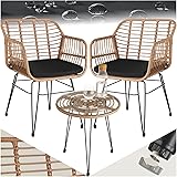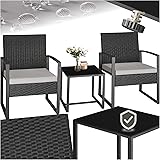 tectake® Ensemble Salon de Jardin encastrable en Poly Rotin 2 Personnes Ensemble Fauteuil Salon et Table de Jardin, Coussins Inclus, Mobilier de Jardin pour Amenagement Balcon Terrasse