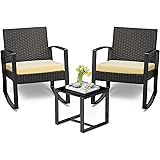 Abician Salon de Jardin Extérieur en Osier 2 Personnes Table et Chaise Ensembles 3 Pièces avec Fauteuils à Coussins Mobilier de Jardin pour Balcon, Terrasse Kaki/Crème