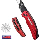 WORKPRO Cutter Professionnel Pliant, Cutter Utilitaire avec Mécanisme de Changement Rapide, 10 Lames SK5 Incluses, Idéal pour Coupe, Rouge