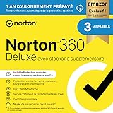 14,99 € (à date de 19 avril 2026 21:35 GMT +02:00 - Plus d’infosAmazon et le logo Amazon sont des marques d’Amazon.com, Inc. ou de ses affiliés. Les prix et la disponibilité des produits sont exacts à la date/heure indiquée et sont sujets à changement. Toute information de prix et de disponibilité affichée sur Amazon.fr au moment de l'achat s'appliquera à l'achat de ce produit.)Norton 360 Deluxe Exclusivité Amazon* + 25 Go de sauvegarde cloud supplémentaire 2026 |3 Appareils | 1 An d'Abonnement en renouvellement automatique |Téléchargement